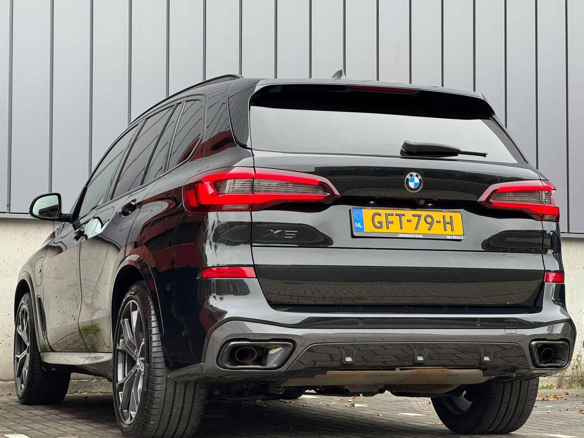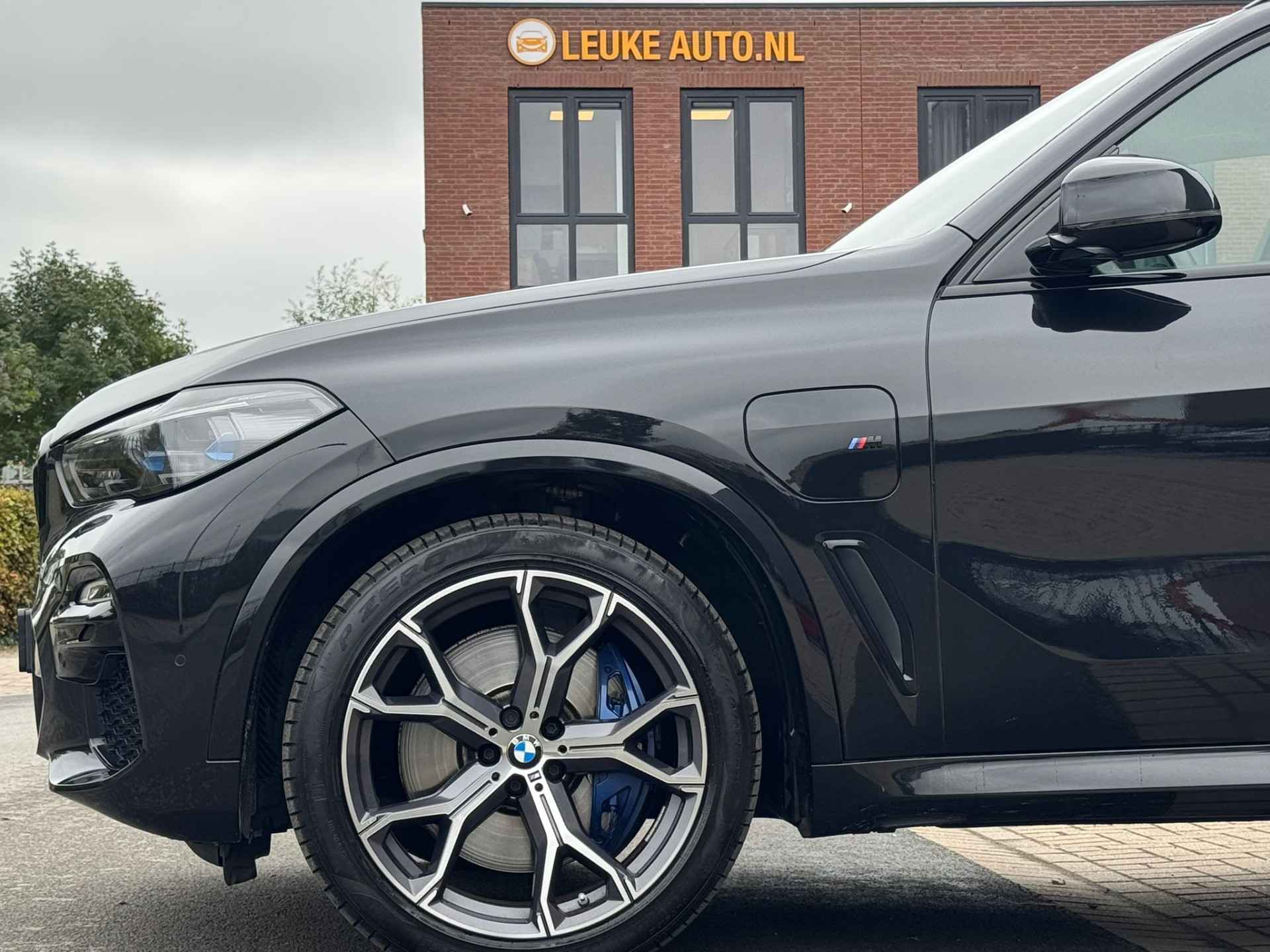Prachtige BMW X5 XDrive 45e 394PK High Executive M-Sport Shadow! Bijzonder mooi gespecificeerd in Saphirschwarz metallic met Dakota Zwart lederen M-Sport interieur afgewerkt met 21'' dubbel vijf-spaak gepolijste velgen, M-Sport remklauwen in Blauw, Shadow-Line hoogglans Zwarte grill, sierlijsten én extra getint glas. Verder is de auto uitgerust met Harman-Kardon Premium soundsysteem, 360 graden camera systeem, Head-UP Display, dode-hoek detectie, BMW Laser LED koplampen, stoelverwarming en stoelventilatie, memory stoelen, elektrisch wegklapbare trekhaak, adaptieve cruise control, dode-hoek detectie, keyless entry/GO, inklapbare buitenspiegels, alle veiligheidsopties en veel meer. Wij hebben de auto in 2024 rechtstreeks ingekocht bij de BMW dealer in Duitsland (aantoonbaar) en hebben de auto geleverd aan een vaste klant waarvan de auto nu afkomstig is. Uiteraard is alle historie en documentatie aanwezig en inzichtelijk.