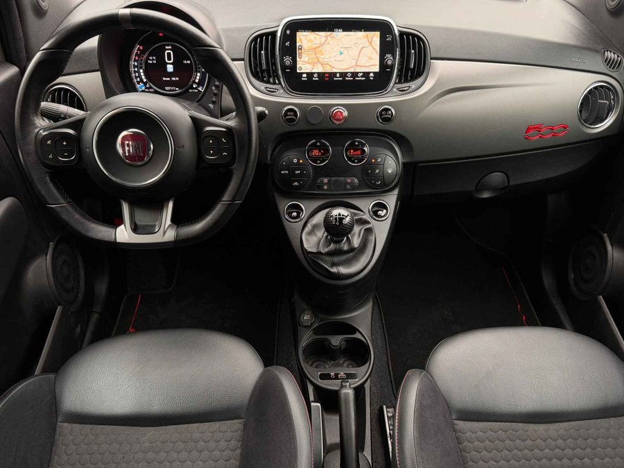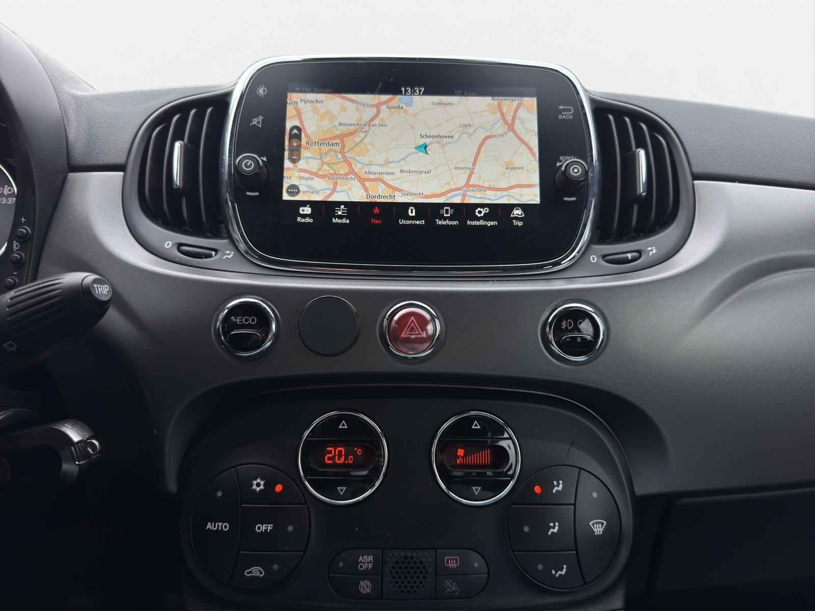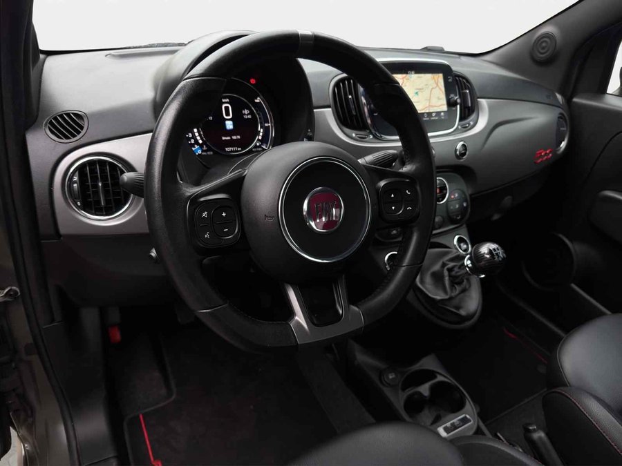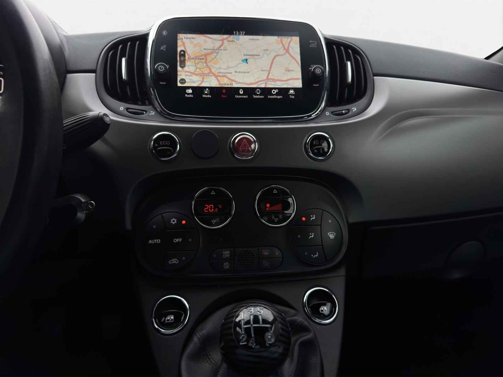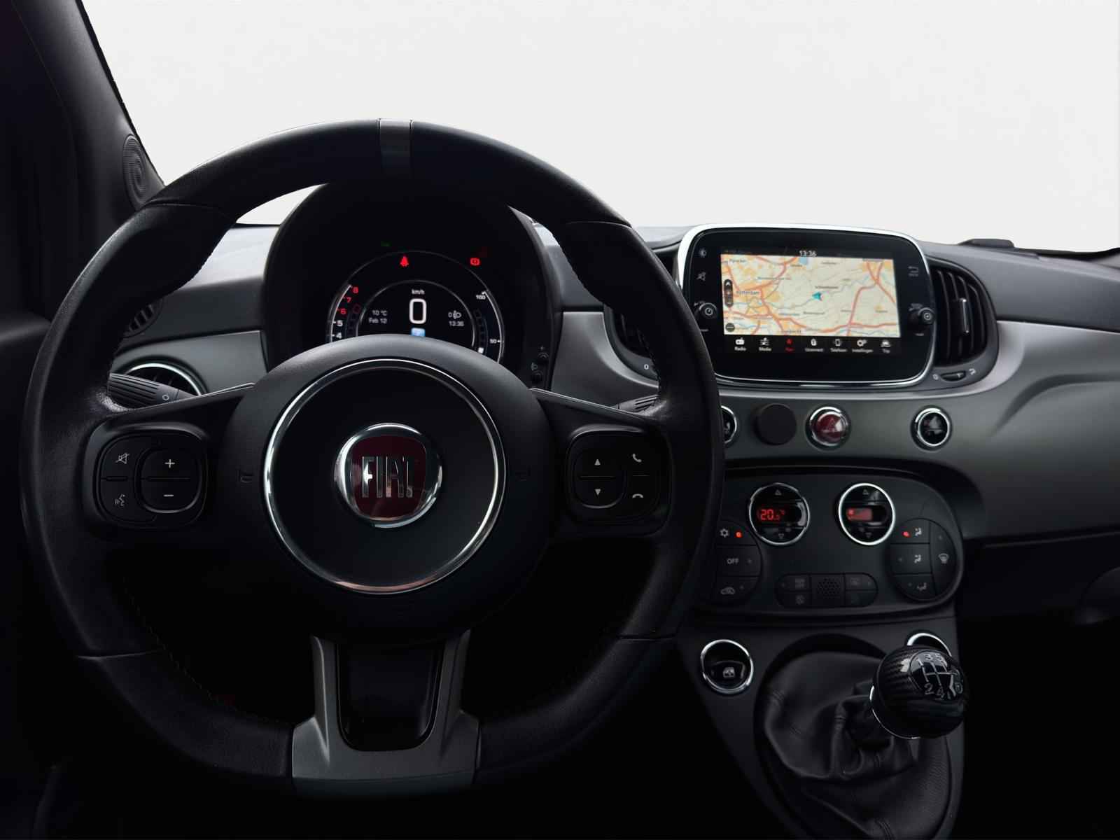 Prachtige, stoere Fiat 500 0.9T 86PK Turbo Sport in Mat donker Groen! Uniek samengesteld met grootbeeld navigatiesysteem, Apple-Carplay/Android-Auto, 16'' lichtmetalen sportvelgen, automatische airconditioning met digitale weergave, parkeersensoren, multifunctioneel lederen sportstuur, donkere hemelbekleding, LED dag-rijverlichting en LED achterlichten, Alcantara/Lederen sportinterieur, parkeersensoren en veel meer.
