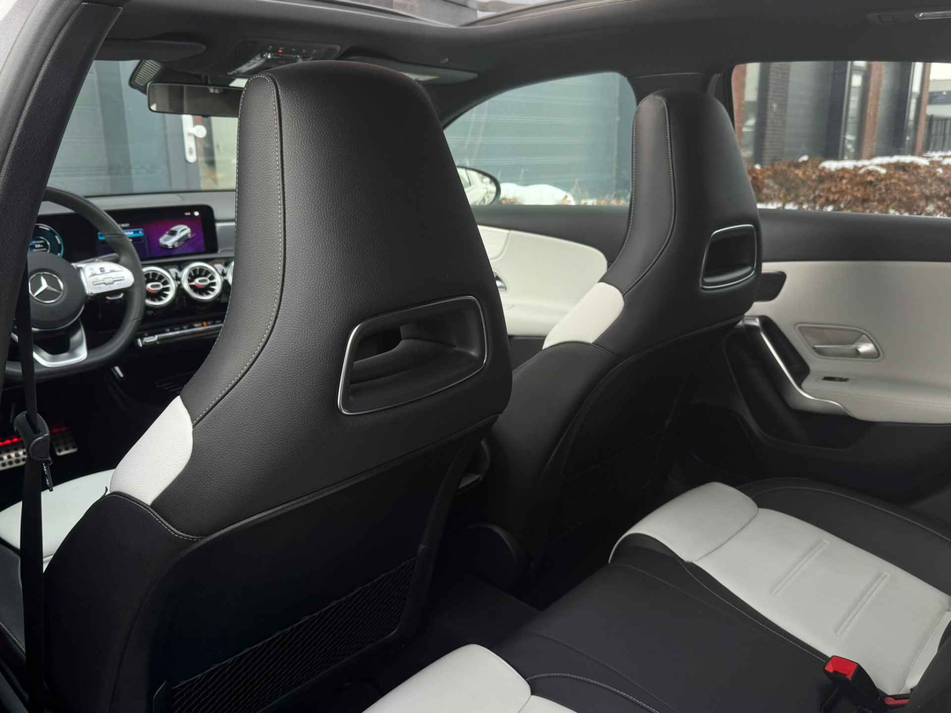 Prachtige Mercedes A-Klasse 180 136PK Automaat Premium Plus AMG met slechts 59.000 kilometers op de teller! Zeer luxe uitvoering met panoramisch schuif/kanteldak, sfeerverlichting, lederen AMG interieur met stoelverwarming, sfeerverlichting, 19'' multi-spaak AMG sportvelgen, Night Pakket met hoogglans Zwarte sierlijsten en extra getint glas, LED koplampen en LED achterlichten, stoelverwarming en meer! Uiteraard is de historie bij ons bekend.