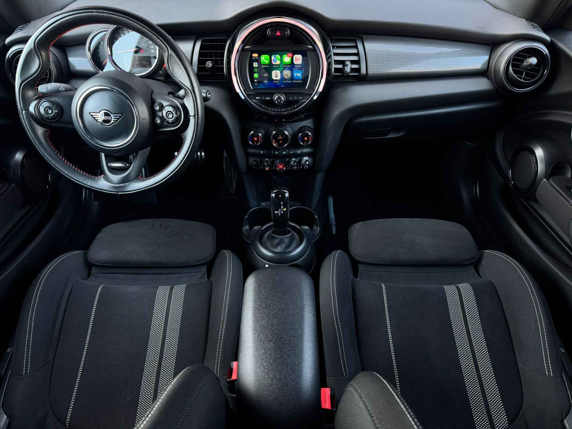 Prachtige Nederlands geleverde Mini Cooper 1.5 136PK Automaat John Cooper Works met slechts 93.000 kilometers op de teller! Origineel Nederlands geleverd, zeer zorgvuldig bereden en in absolute topconditie. Verder is de auto uitgerust met John Cooper Works exterieur én interieur, 17'' hoogglans Zwarte JCW sportvelgen, Alcantara JCW sportstoelen afgewerkt met Alcantara, LED koplampen en Union Jack LED achterlichten, hoogglans Zwart contrasterend dak, spiegels én striping, Apple-Carplay, Keyless entry/GO, elektrisch inklapbare spiegels, full-map navigatiesysteem, automatische airconditioning met digitale weergave (twee zones) en veel meer.